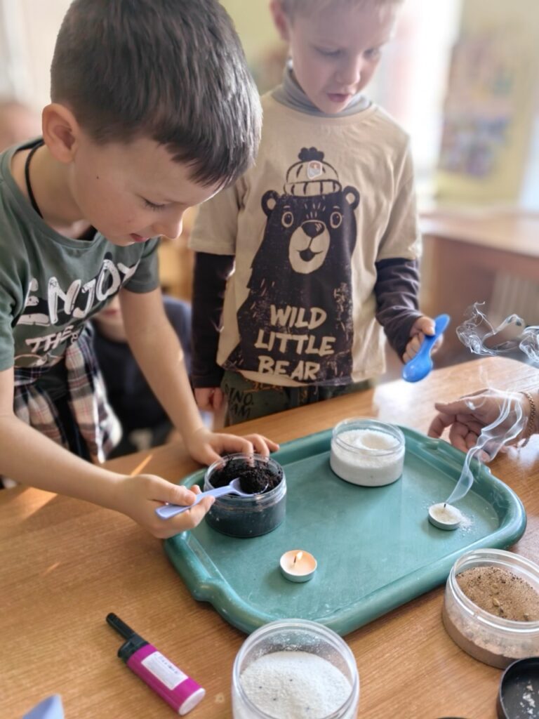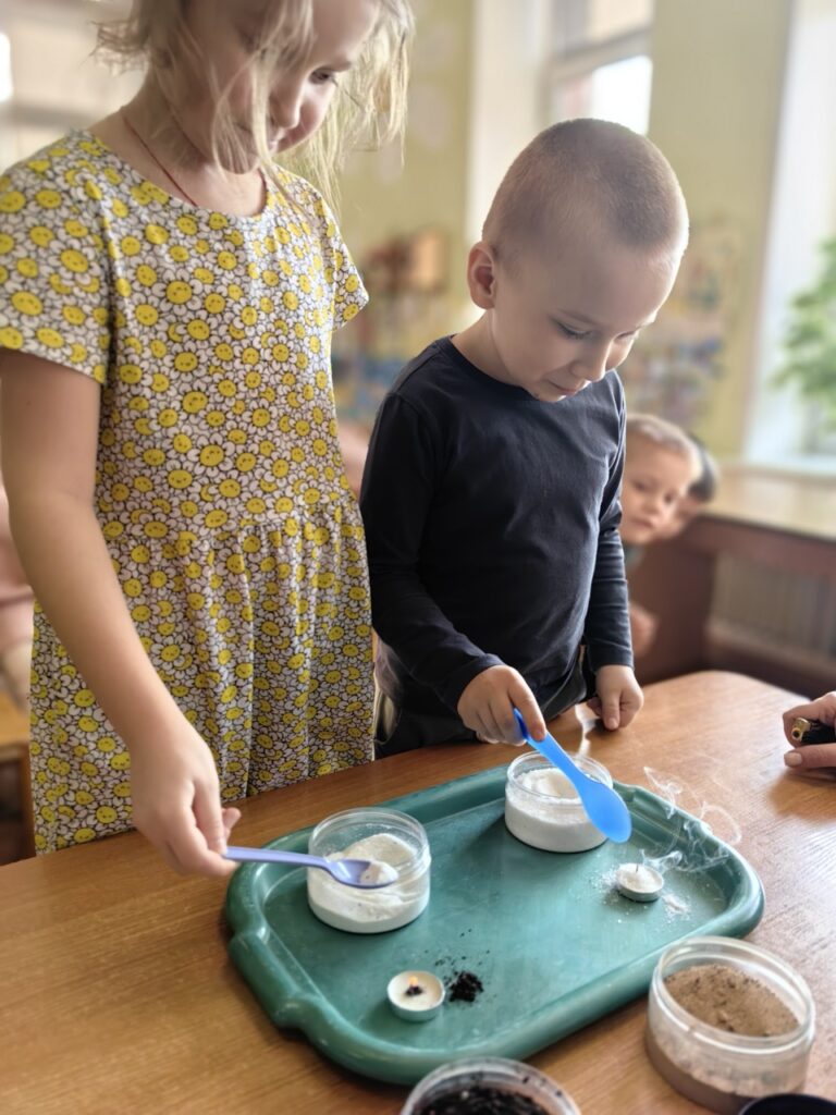 Однако самым ярким и запоминающимся событием для детей стала практическая часть занятия. Под чутким руководством Екатерины Валерьевны и Натальи Николаевны дошколята смогли почувствовать себя настоящими укротителями огня. Ребятам показали, что справиться с небольшим возгоранием можно не только при помощи воды, но и подручными средствами. С большим интересом и энтузиазмом дети тушили условный огонь, используя песок, землю, а также убедились в эффективности обычных сыпучих материалов, таких как соль и даже стиральный порошок.
